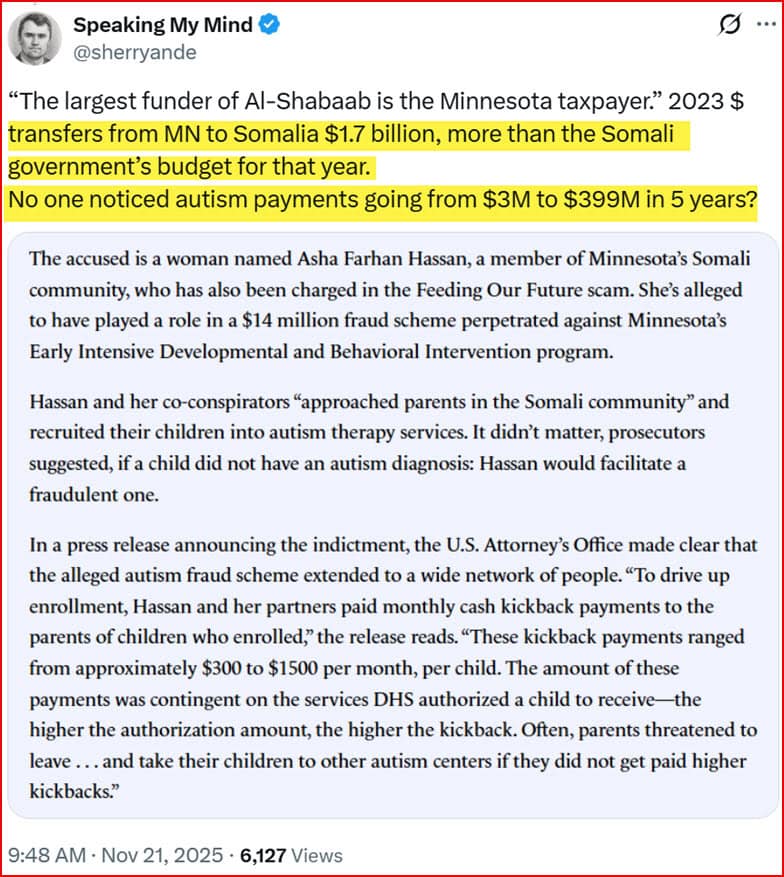 So, it turns out that Somali groups, principally located in Minnesota, may have stolen up to $8 billion (with a “b”) from state and federal taxpayers.