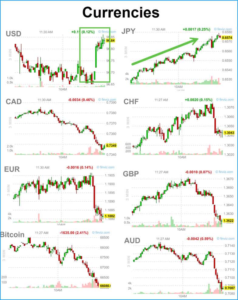 It all begins with a sudden, very sharp spike in the dollar accompanied by declines in every other currency…except the yen.